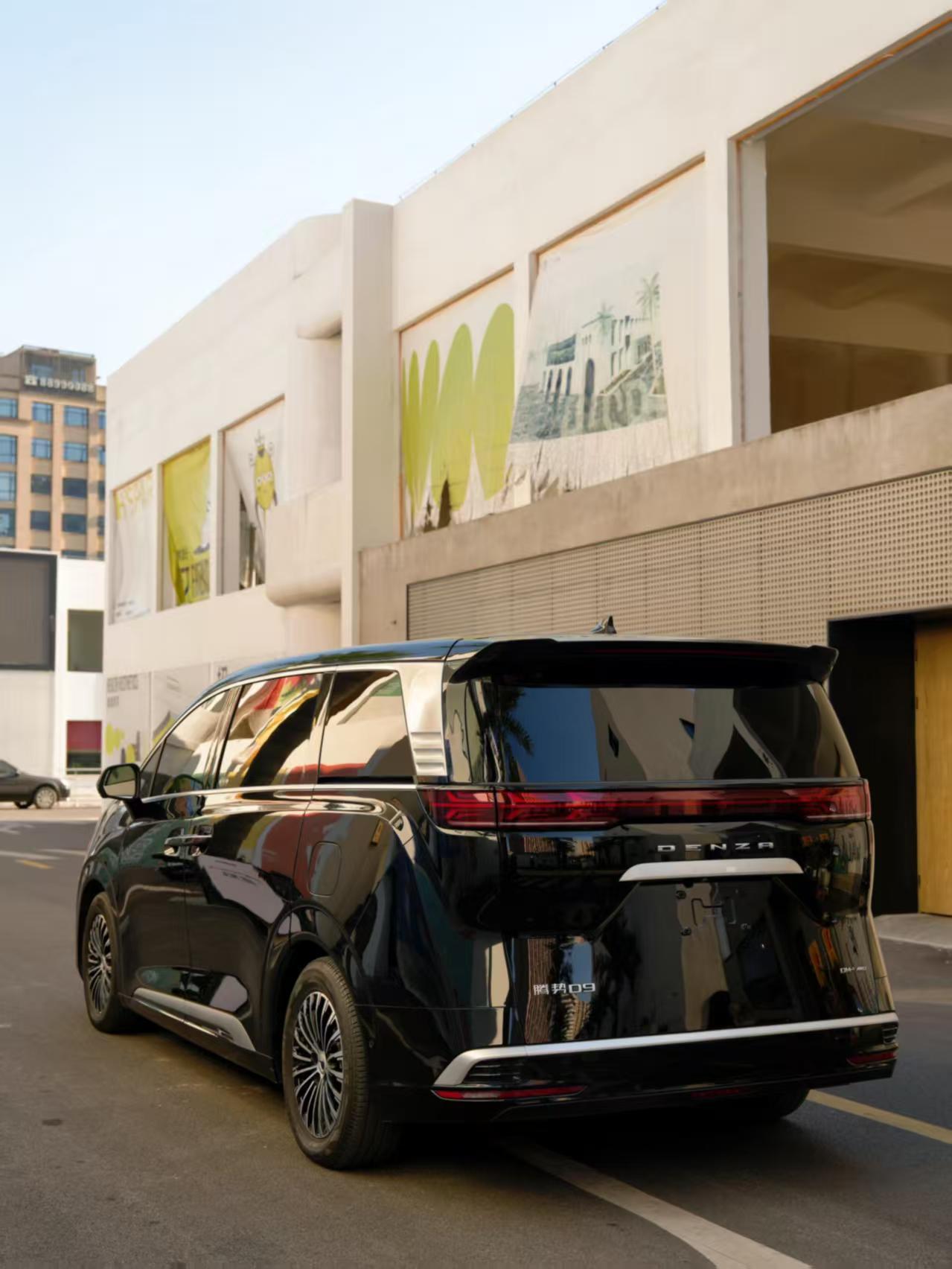 腾势D9二排航空座椅细节图!腿托升起挡住半个车窗,老外蜷在里面翘脚刷手机