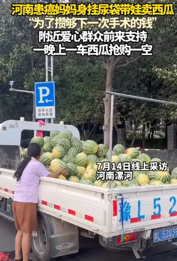 看着她挂着引流管站在瓜摊前,看着9岁女儿踮着脚替妈妈称重,听着那句“为了活着呀”,心头真不是滋味。