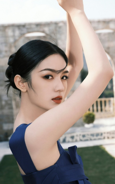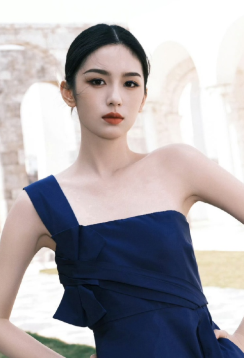 周也的蓝色单肩裙,状态超好的,这气质是你喜欢的吗?