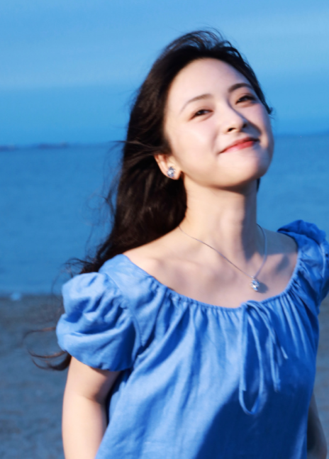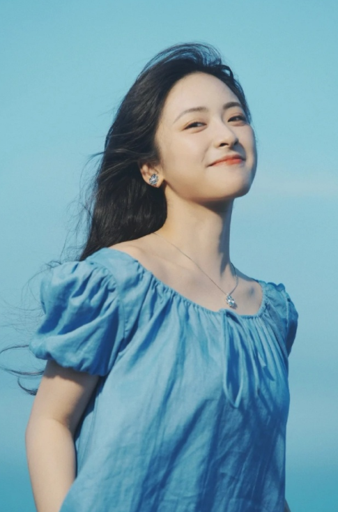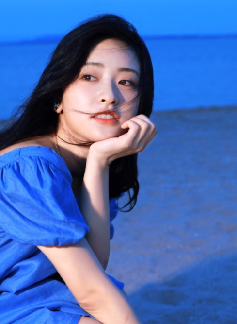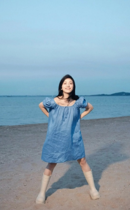 沈月海边蓝裙大片,状态是真的很不错,超可以的!