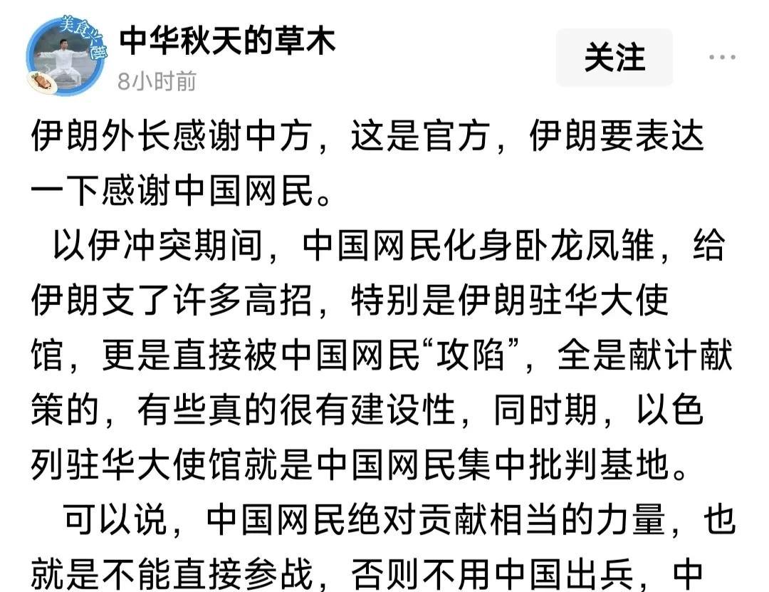 中国联大代表反对胡塞袭击红海商船!中国驻以大使反对哈马斯恐怖暴力!反对伊朗想把以色列从地球上抹去! 这些立场鲜明的表态,是对某些激左拳棍鼓噪中国支持胡塞,支持伊朗,与美国以色列斗到底言论的明确回击! 实在想不通,改革开放几十年了!还有不少激左拳棍,还活在“文革”时期,怀念激情岁月,那么喜欢阶级斗争。 在国内要与“资本家”“恨国党”“大殖子”斗!国际上要与美欧以色列斗! 从不回想是他们帮助中国改开发展!不了解这些国家为什么富裕发达? 更不了解那些至今落后贫穷国家!为什么贫穷?为什么动乱战争不止? 当然中国爱好和平,愿广交天下朋友!无论穷国富国,无论美欧还是俄罗斯,以色列还是伊朗,都一样对待。 但是这种友好合作,是有前提的!就是遵守联合国宪章,遵守国际规则,反对侵略与暴力恐怖!这是大原则。 遗憾是互联网上,仍有不少网友,生活在21世纪,思维还停留在“文革”时期!美帝西方国家仍是我们的敌人! 凡是敌人反对的,我们就拥护;凡是敌人支持的,我们就反对!如此四面树敌人,怎么融入世界持续发展? …………