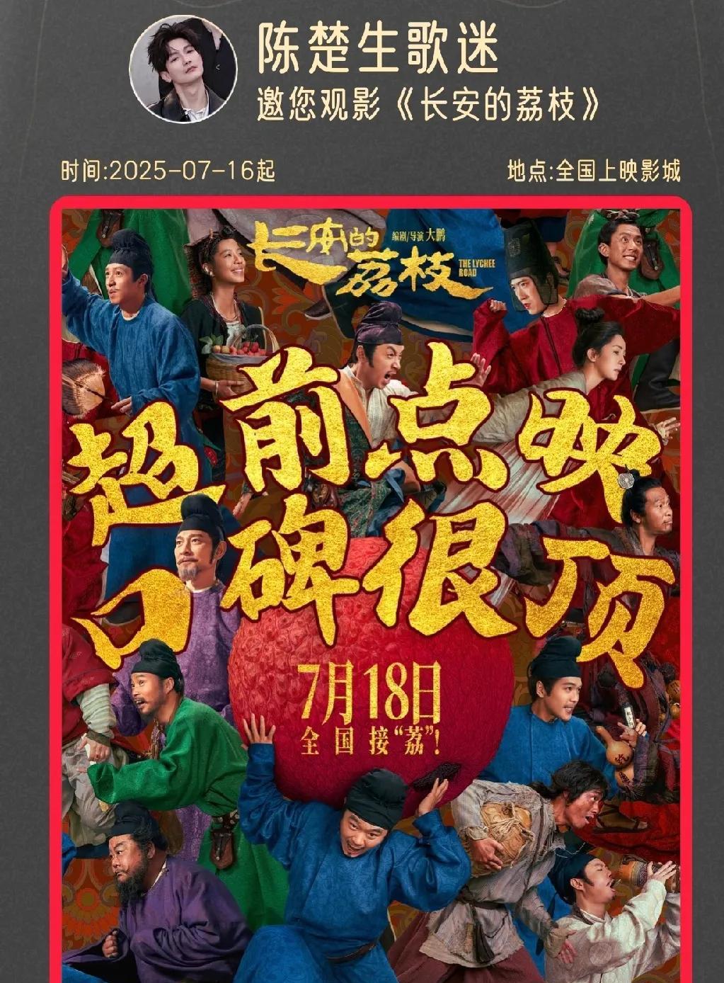 猫眼预测《长安的荔枝》票房8忆,暑期档冠军! 原本是因为《庙堂之外》去看的电影,没想到意外收获一部好影片! 影片里的各个角色全员在线,大鹏自不用说,从意气风发的少年郎到失魂落魄的亡国恨,每一个镜头都透露着精心揣摩后的完美。 刘德华杨幂白客庄达菲都让人眼前一亮,最大的惊喜是庄达菲的表演比射雕好太多了,刘德华的颠覆性大反派值得大赞[赞]! 最感人的三个片段是, 刘俊谦扮演的义奴坠入悬崖, 大鹏快马狂奔进长安杨幂在路旁等候洒落一背包的木棉花, 大鹏闻知国破在荔枝树下失魂落魄的吃荔枝,鲜美的荔枝那一刻是世上最苦涩的果!让人泪目! 片尾曲《庙堂之外》是绝对加分的,听完了片尾曲,就是对整个影片的一个回顾,这个感叹来自李善德,也来自演唱者陈楚生。 大鹏和陈楚生,双赢!#2025票房榜# #长安的荔枝# #陈楚生#