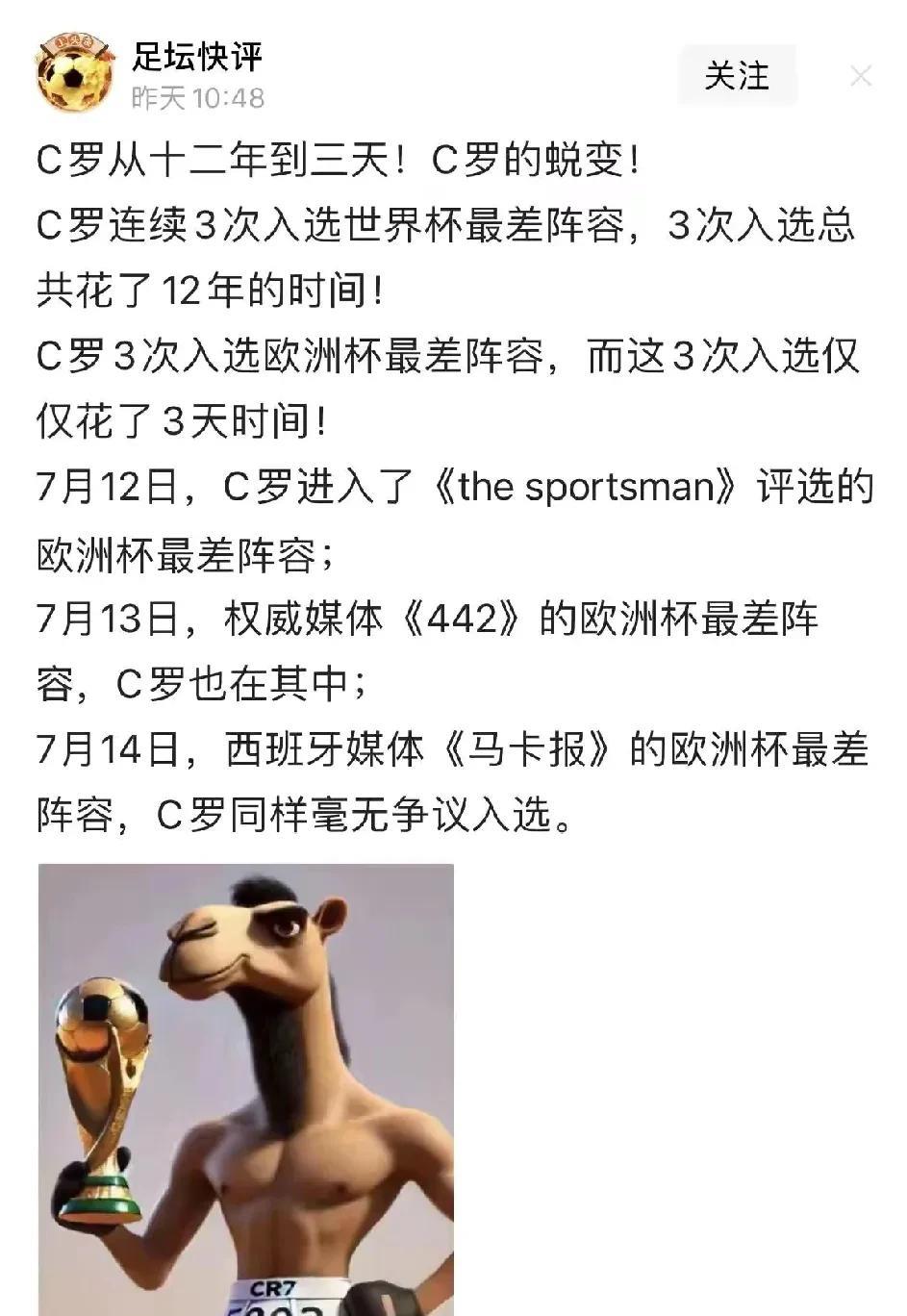 我只是说出事实,就弄疼了你们这些罗粉脆弱的心……使我想到了梅西夺得世界杯那天,满网是“都完蛋了”的评论