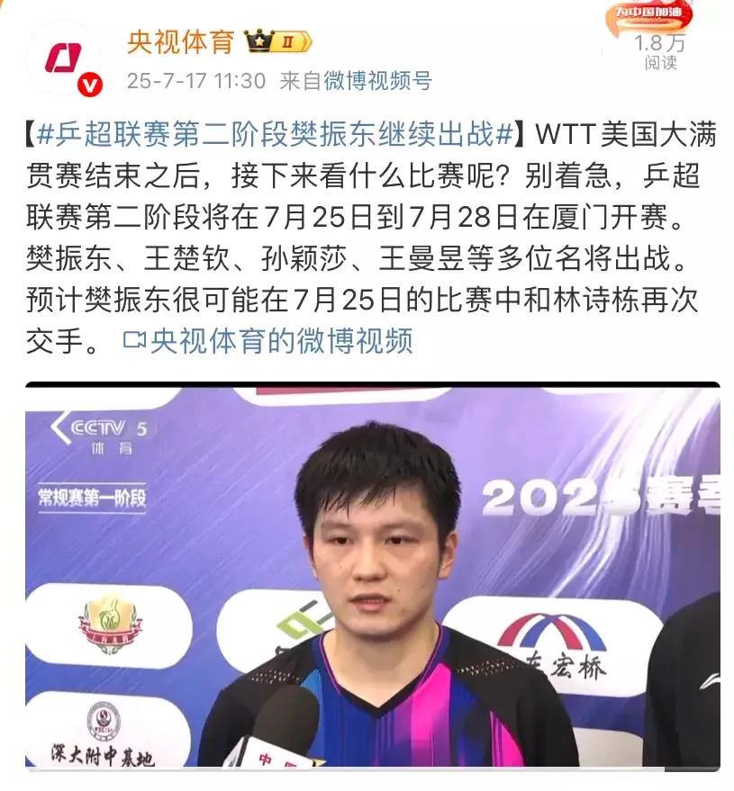 好消息,樊振东强势回归了, 7月25日乒超联赛第二阶段开打, 樊振东对战林诗栋, 奥运冠军碰上世界第一, 另外还有最强第二王楚钦, 三大战神最终谁会胜出, 女队这边, 莎莎和曼昱也不甘示弱, 唯一遗憾的就是陈梦还是不参加, 你觉得陈梦还会复出吗