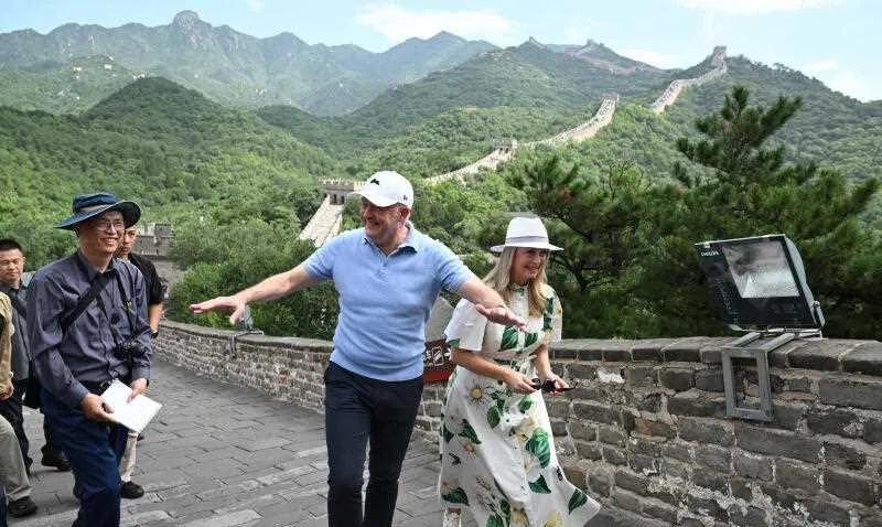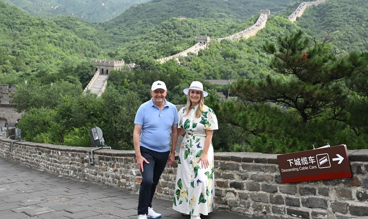 严月霞陪澳大利亚总理爬长城!穿咖色衬衫配休闲裤,青春洋溢,私服造型又美又飒~ 7月16日,正在访华的澳大利亚总理携未婚妻去爬长城了!她选择了一身清爽的印花连衣裙搭米白遮阳小礼帽出镜,虽简约却好有度假氛围。62岁的澳大利亚总理为了配合未婚妻,特意穿了一身天蓝色POLO衫配白色棒球帽,十分减龄显活力,两人同框登长城,全程难掩开心激动好心情! 没想到,最美女保镖严月霞也来了,罕见以一身休闲装素颜亮相的她,在人群中依旧好吸睛!扎着低马尾辫,随意穿一身基本款咖色短袖衬衫,清爽利落,内搭黑色针织T恤,更显英姿飒爽;下配同色系休闲裤的造型,展现出不同以往的青春活力感,又美又飒,气质远超很多一二线女明星,果真是景美人更美,太过赏心又悦目了!
