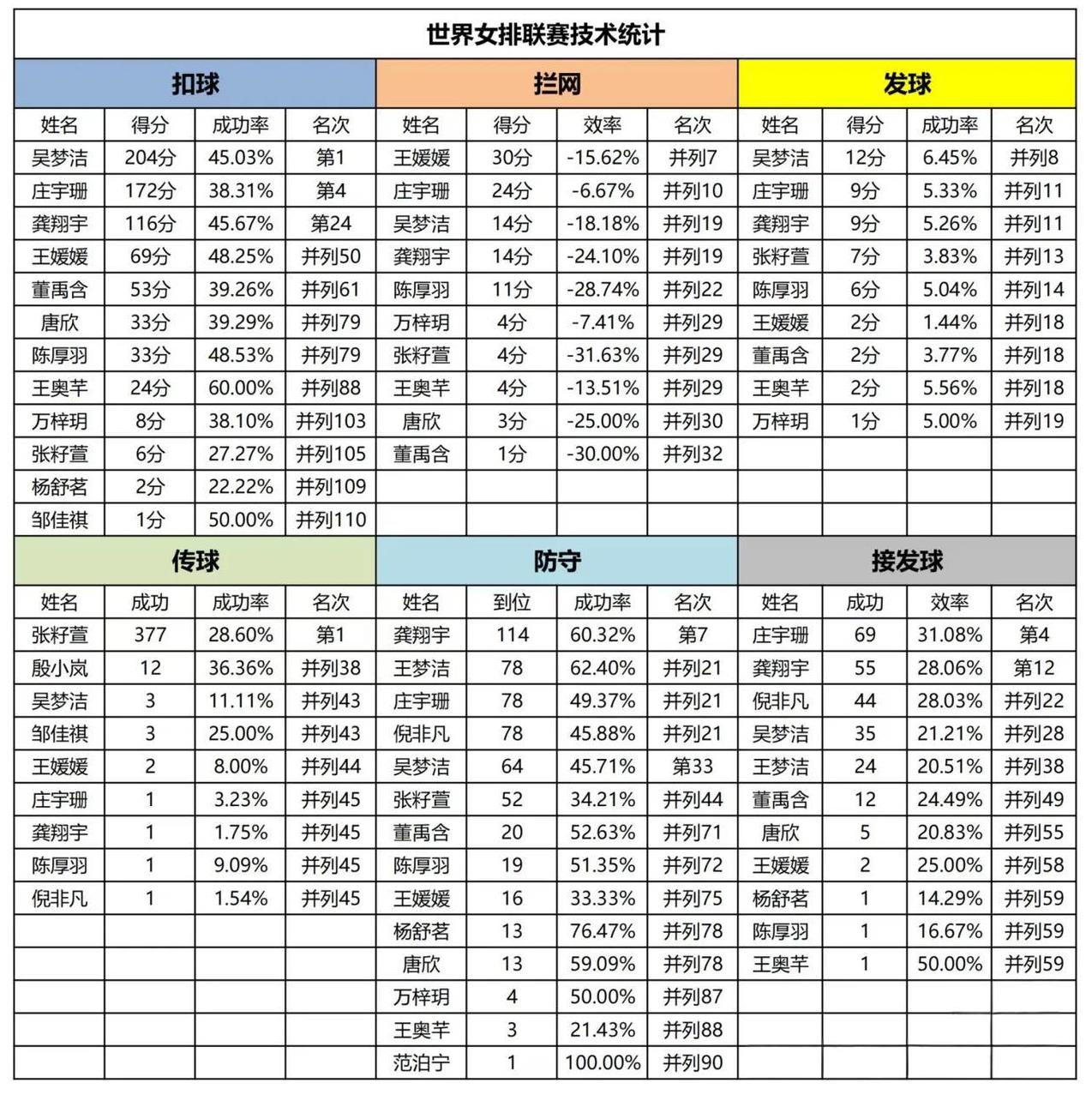 从世联赛分站赛数据,分析中国女排阵容实力,谁是各自位置上的超级选手?#中国女排里