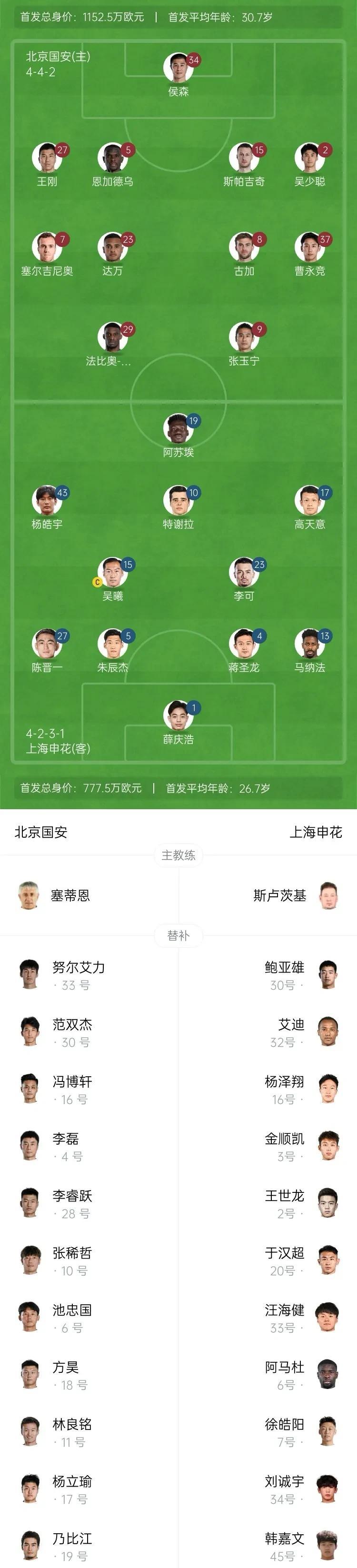 中超联赛第17轮焦点战役,北京国安主场对阵上海申花,5外援PK3外援,获胜者将排