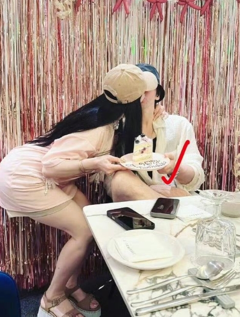 54岁钟丽缇给43岁张伦硕庆生,俯下身子亲吻撒狗粮,亲亲半蹲着也就算了,拿蛋糕合照也要半蹲,真的是少女心满满。