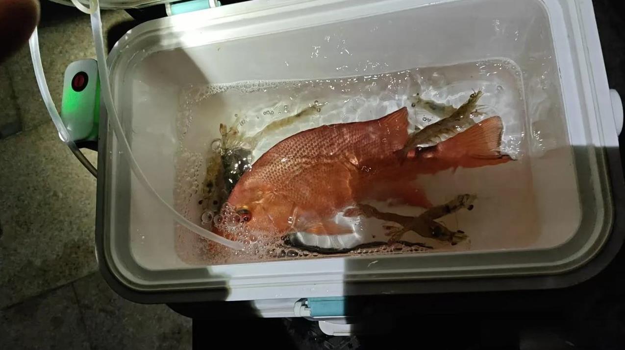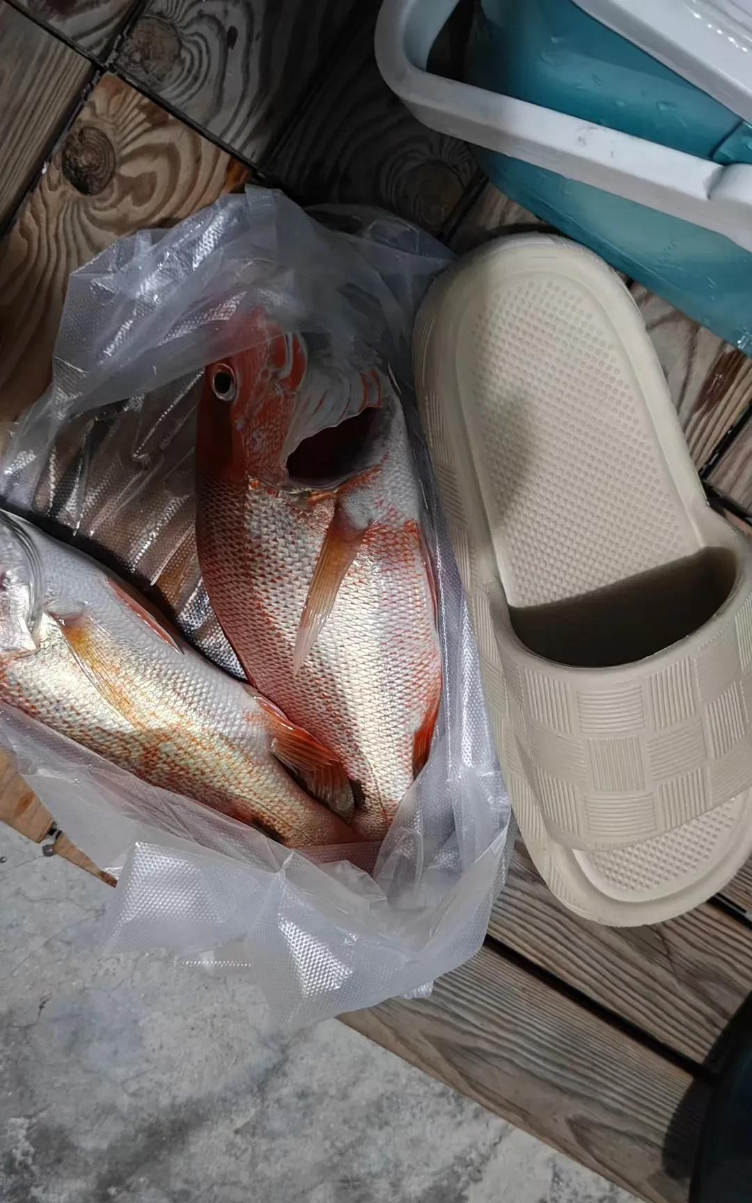 看看我老弟在盐田港夜钓的收获!盐田港各种的鱼非常多,很好钓。 我老弟非常喜欢钓鱼,刚好我妹就在盐田港海鲜街那里开小店的,我老弟一有空就过去那里钓鱼,就在那个海边栈道那里钓,每次都钓很多回来,从来就没买过鱼,就有吃不完的鱼。 今晚,我老弟刚开始没钓多久,就有这么多了,那只花花绿绿的螃蟹,不知道叫什么名字,有1斤多重。 那种红色的鱼,很好吃的,长得很像红杉鱼,今天晚上钓到的这几条红鱼个头还是很大的,和我弟弟43码的拖鞋一样长。 盐田港那里最多的就是:乌头鱼、黄立鱼、带花点的不知道什么鱼、还有这种红色的鱼了。 我妹家的冰箱里面塞满了这几种鱼,都是我老弟钓的,每次还没吃完,他又钓一大堆回来了,我妹妹说真的是吃到怕。 有时候他们谁有空的话,也会送一大包来龙华给我。