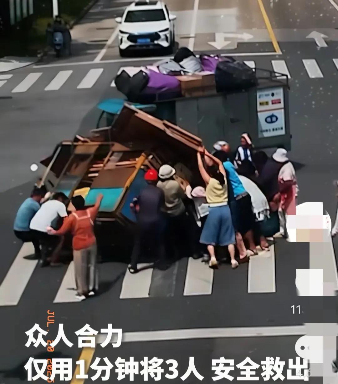 这群人火到了人民日报! 炎炎夏日,街头本是寻常的车水马龙,谁也没想到,一辆满载杂物的三轮车,在路口突然侧翻,车上三人瞬间被压在堆积的家具杂货与车身下,情况紧急。 惊人的一幕出现,路过的市民,不管是开着小汽车的大姐,还是骑着电动车的小哥,甚至还有一位独臂老人,都像听到无声指令,潮水般涌上去。 独臂老人虽只有一侧臂膀可用,却丝毫不含糊,不顾一切的往上冲,看他拼劲全力冲刺导致身体失衡的样子甚是心疼。 经过众人合力,不过短短一分钟,被困的三轮车司机和同伴就被安全救出。这一分钟,街头的陌生人成了 “战友”,独臂老人更是用残缺却无比有力量的身影,诠释着什么是 人间值得。 没有惊天动地的誓言,就是一群普通人,用最本能的善意,在街头书写了最动人的故事。
