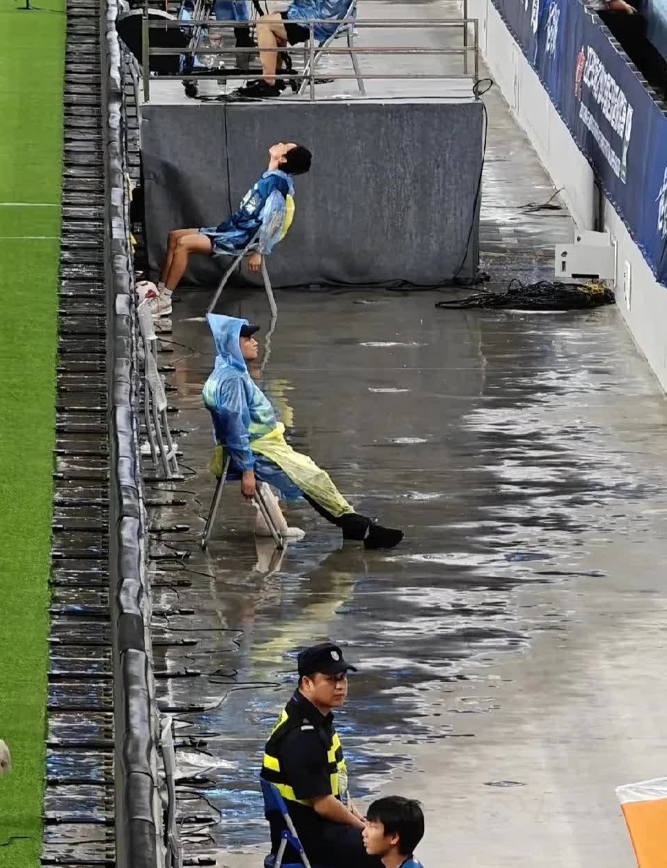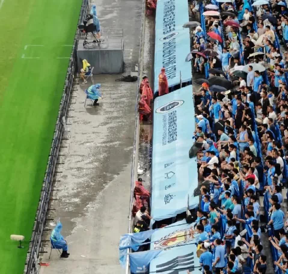 台风韦帕第一批受害者出现了 台风 “韦帕” 来袭,深圳体育中心的足球比赛现场,成了截然不同的两个世界。看台上球迷们热情似火,呐喊助威声丝毫未被风雨影响;而场边的工作人员、安保人员等,却在暴雨中 “凌乱” 。他们穿着雨衣,有的瑟缩着,有的无奈地看着积水 ,在恶劣天气下坚守岗位。 有人为他们的敬业点赞,认为这是对工作负责的体现;但也有人觉得,在台风这样极端的天气下,保障人员安全才是第一位,赛事安排或许该更灵活。你怎么看呢?