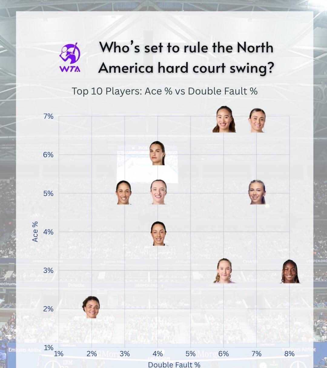 WTA马德里站后,球员一发得分率对比二发得分率: Ace率对比双误率 谁将统治即将开始北美硬地赛场?
