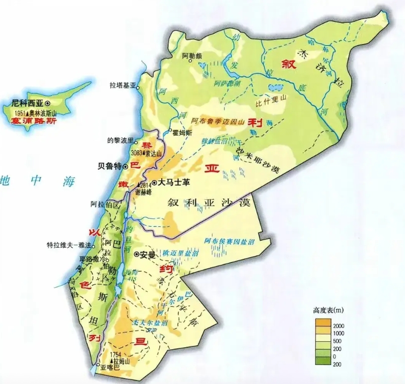 以色列独占戈兰高地,中东水塔,会不会学习印度控制水源呢? 中东沙漠戈壁,水比油贵。 如果说耶路撒冷是中东的精神支柱,那么戈兰高地就是中东的生存依靠。 以前以色列占领了戈兰高地大部分,叙利亚占有戈兰高地的库奈特拉省。现在这个省,外加叙利亚南部的德拉省,苏韦达省,都在以色列掌控中。 戈兰高地位于以色列、黎巴嫩、约旦、叙利亚交界处,约旦河、阿西河都发源于戈兰高地。 戈兰高地最高海拔就是黑门山,海拔2814米,我国泰山海拔1545米,华山海拔大约2100米,关键是戈兰高地属于地中海气候,冬季才是雨季,年降水量大约800毫米。在黑门山的山沟里,冰雪有数米厚,温度低,终年有冰雪。