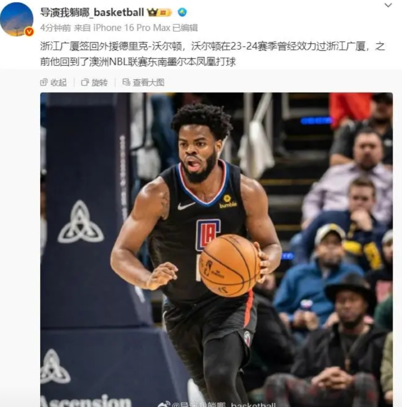 最新消息!浙江广厦队签回老熟人德里克-沃顿,这说明浙江广厦新赛季与巴里布朗彻底无