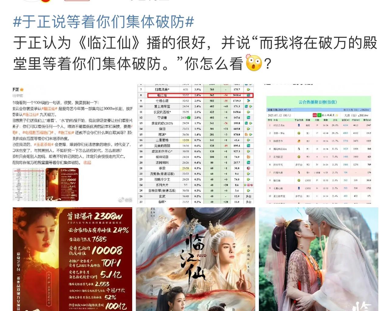 这下白鹿和于正都要睡不着了 不是因为白鹿不够漂亮 也不是因为白鹿不够优秀 更不是因为白鹿演技不够好 而是因为李兰迪和敖瑞鹏主演的《朝雪录》马上要破万了 而这部剧云和早就登顶了 每天都至少4000万的播放量 白鹿的老板于正曾放豪言 《临江仙》是大爆剧(争议很大) 这部剧坐等后面的剧都扑扑扑 但是现在《朝雪录》马上要破万了 而且这部剧没有搞很夸张的云包场 做到口碑和演技都被称赞 靠着演技和剧情把观众吸引进场 敖瑞鹏年初和白鹿还合作了 没有爆现在这部剧直接飞升 白鹿怎么能不恨 《临江仙》破万了吹什么呢 吹首日爆开打破纪录 但是貌似被《书卷一梦》又破了记录 吹2025年唯一一部破万的古装剧 但是现在马上《朝雪录》要破万了 而且热度只会比它还高 关键两部剧区别还蛮大的 《临江仙》破是破万了,但是争议好大,被怀疑注水,遭到群嘲。评分也很低。 《朝雪录》破万在即,演员受到表扬,口碑热度双丰收,目测评分不会太低,打底7.6以上走。 关键白鹿比李兰迪大7岁啊! 爱奇艺尖叫之夜有可能两个人要PK尖叫女神了。