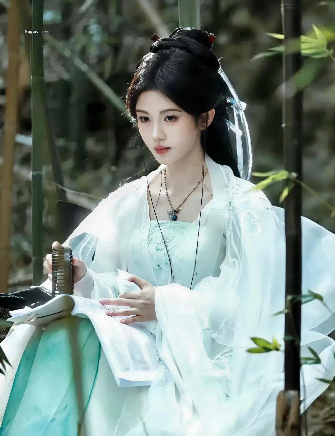 鞠婧祎这几天的路透造型, 真是一套比一套美!美不胜收! 竹林间一袭清白纱衣, 勾
