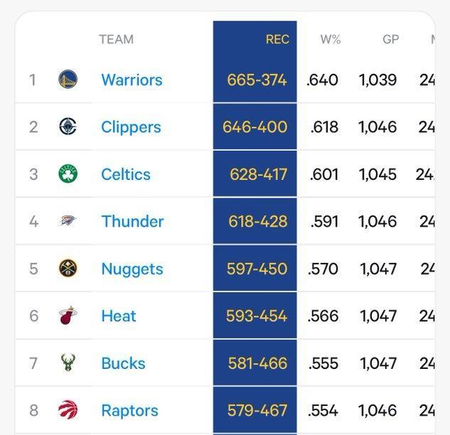 也是邪门了!2013年以来快船总胜率联盟第2,胜率前9的球队仅快船没拿过总冠军! 2013年以来NBA球队总胜率: 1、勇士:665胜374负,胜率64%; 2、快船:646胜400负,胜率61.8%; 3、凯尔特人:628胜417负,胜率60.1%; 4、雷霆:618胜428负,胜率59.1%; 5、掘金:597胜450负,胜率57%; 6、热火:593胜454负,胜率56.6%; 7、雄鹿:581胜466负,胜率55.5%; 8、猛龙:579胜467负,胜率55.4%; 9、马刺:575胜470负,胜率55%; 自2013年至今,共诞生了13个总冠军,其中勇士4冠,热火、马刺、骑士、猛龙、湖人、掘金、雄鹿、凯尔特人、雷霆各自一个冠军。 而快船虽然拿到了61.8%的胜率,但就是拿不到冠军,常规赛真的赢的够多了,但到了季后赛,不是这个伤就是那个病,休赛期兵强马壮,打着打着成了老弱残兵。 从任何角度来看,快船的管理层已经足够优秀了,搭建的阵容纸面实力足够强,但真的架不住命运捉弄。 本赛季,科林斯、大洛、比尔、保罗尽数加盟,这队伍又成型了,又是到了争冠的季节,等到来年时,快船甚至有可能成为胜率第一,但依然无冠....