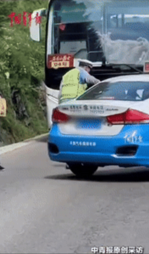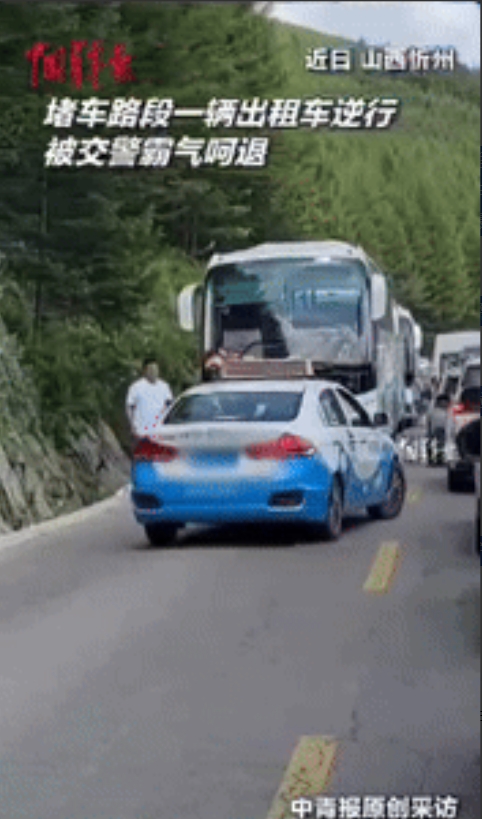 “这交警火了!”山西忻州,一辆蓝白相间的出租车在拥堵路段,强行逆行插队,交警赶紧