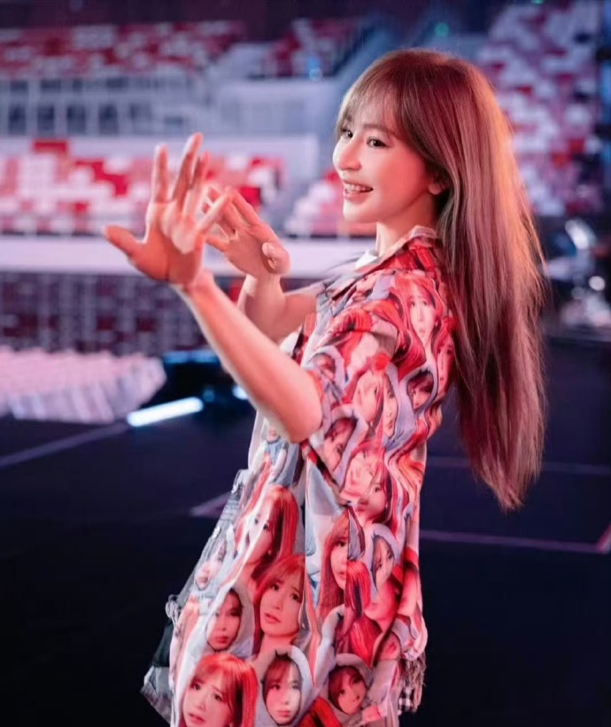 王心凌也是穿上新皮肤啦,王心凌穿上印有自己的头像的衬衫,活力满满状态绝了,好可爱