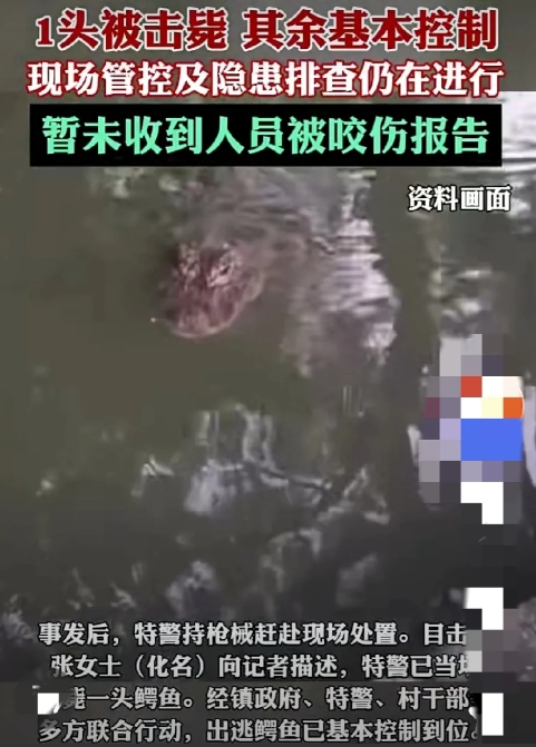 #景区4只鳄鱼出逃1头被击毙# 水中霸主,鳄鱼游弋,霸气侧漏,无人敢敌。它隐于水面,目光如炬,每一步皆显沼泽之王的威严!鳄鱼水中霸主已击毙,不知鳄鱼肉好吃否?可惜鳄鱼皮不知能做几个包包呀! 据官方通报,共有4只人工养殖的鳄鱼从养殖区逃出,其中1只被特警当场击毙。 当地政府联合特警、村干部等迅速展开处置,目前剩余鳄鱼已基本控制到位。官方明确表示,所有出逃鳄鱼均为人工养殖且体型较小,未造成人员伤亡。