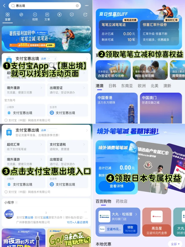 暑假到了,日本是一个不错的旅行目的地,很多朋友想一次性把东京、大阪都玩遍!去过二十多次日本的博主告诉你如何游玩日本! 我是一名已环球70国的旅行爱好者 - 📅行前准备 ❶流量卡 ❷填写VJM入境信息(图12) ❸下载&充值西瓜卡(图13) - 🌈线路规划: 具体行程参考图1 - 🗺旅游攻略手绘地图 东京:图2 镰仓:图3 富士山:图4 京都:图8 奈良:图9 大阪:图10-11 - 💰日本省钱攻略(图5-7) ❶来日本不用提前换钱,汇率不好!在日本机场或711的atm随意取一些即可! ❷日本很多地方都可以使用支付宝!不但有惊喜汇率券可以领,还能享受笔笔减优惠,既方便又便宜! - ✅7.21-8.5上支付宝搜【惠出境】就可以get,消费首单立减5元,买买水买买零食都很便宜,还有免.单的福利,至高可免888r呢 ✅另外大阪我经常去的BigCamera、唐吉柯特买药妆品或电器,货品很全,价格不错!而且它们还是支付宝的臻选商家,在这里买东西不仅可以享受笔笔减,更可以享受专属汇率,比五星汇率力度还大,还有关西机场等36个商户都可以享受,记得购物之前先领取!这样会便宜! - 🚇交通 ❶东京镰仓 湘南新宿线55min ❷镰仓富士山 藤泽站做巴士到河口湖,全程2小时10分钟,2200日币(需提前定) ❸富士山京都 🔹河口湖三岛:2300円(需提前定) 🔹三岛京都:11310円 ❹京都奈良 乘近铁京都线到大和西换乘奈良线,760円 ❺奈良大阪 乘大和路线到大阪站,820円 -