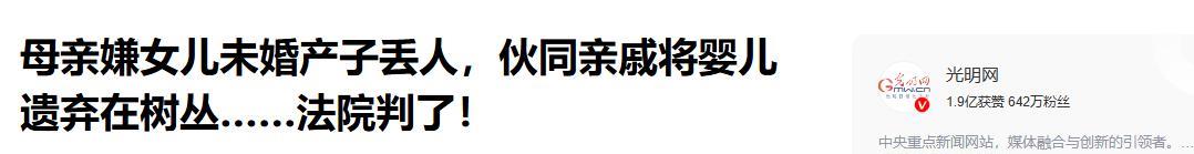 吉林女主播未婚先孕,男友失联,产下一子。母亲嫌丢人,和女子大姨、表姐趁女子睡着,把男婴扔到郊外树丛中。万幸当天一施工人员发现,报警救下男婴。之后涉案人员都被抓获,法院这样判了! 7月21日,吉林女主播和男友的爱恨情仇,却意外坑了自己的母亲、大姨和表姐。事发于2023年,小洁是一名女主播,直播的时候认识了一个男粉丝,两人在网上越聊越欢就约定现下见面,不同于其他主播和粉丝见光死,两人见面了感情迅速上升,很快就确定了恋爱关系。 可是好景不长男子很快就变心,和小洁提出了分手。可是小洁却深入其中,爱的男友无法自拔,虽然想要挽回,但是男友非常绝情,将她所有的通讯方式都拉黑了。在此时小洁发现自己意外怀孕了,小洁觉得只要有这个孩子在,男子迟早都会回到自己的身边,所以她决定将孩子生下来。 为此小洁也没有办法直播了,回到了母亲家里居住。母亲得知这件事非常反对,一个女孩子家家未婚先育,以后还怎么结婚,可是好赖话都说尽了,小洁根本听不进去。无奈母亲只能叫来小洁的大姨和表姐轮番对她劝说。 就这样一直到了小洁即将临盆的时候,此时小洁还没有联系上前男友。原本母亲想的是,只要是联系上孩子父亲,直接结婚了也行,可是对方明显是不想负责任,虽然女儿上头,可是她却不能和女儿一起上头。所以就和小洁的大姨和表姐商量,说孩子真的生下来了怎么办。 表姐就说实在不行就扔了吧,她刚好知道一个非常偏远的地方,如果这个孩子扔到这里还能活下来也算命大,如果不能活,也只能怪他投错胎了。等到小洁生产完之后,母亲三人对小洁进行最后一番劝说,可是小洁仍旧头铁的不同意,说就要带着孩子。 拗不过小洁,母亲谎称先将孩子给亲戚抚养,等小洁结婚了之后再接回来,小洁生产完太虚弱,没有表示同意或拒绝就睡着了。见小洁睡着之后,母亲三人就用毯子包裹着婴儿去往了之前约定的地点将孩子抛弃。 可是他们万万没有想到的是,他们自以为这里没有人,其实是一个未完工的工地,都是晚上上班的。晚上工人施工的时候,刚好听到婴儿的啼哭声,也就报了警。警方根据线索很快就锁定了弃婴的三人,小洁知道这件事情之后,也知道他们都是为了自己好。 但是不管说什么,这三人都已经触犯了遗弃罪,最终母亲被判3缓3,大姨和表姐均是判1缓1。所以恋爱的时候还是不要随便上头,一上头伤害的不仅仅是自己,还有深爱自己的家人。只能说孩子也是命大了,荒郊野岭一个刚出生的孩子,能活下来,福气必定还在后面呢! 对此,你怎么看呢?欢迎在下方评论~