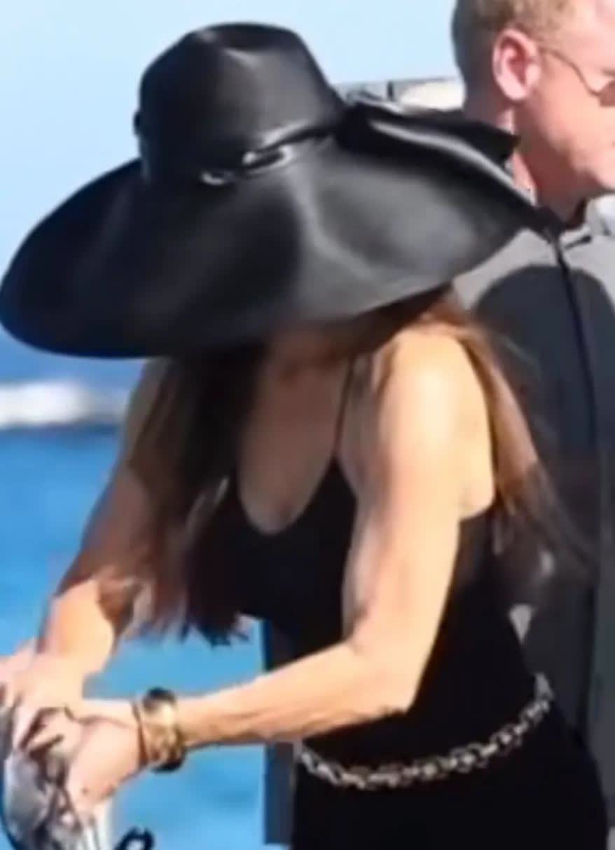 这个女人从嘴到屁股都是假的,能医美的地方哪块也不放过,但就是有人喜欢。 两口子除了上船时分开了一小会儿,到船上,桑切斯就把手搭贝佐斯肩膀上了。走哪儿都黏黏糊糊,比年轻小情侣还热辣,甜蜜感可以信手拈来。 这次出游,桑切斯手腕上戴了一个超宽金镯。宽沿皮帽,细肩带掐腰及地黑色纱裙搭金属腰带,婚后桑切斯的衣品上了好几个台阶。 搞定首富后感觉她更自信、更松弛了。 不再像以前那样随时“放电”,有时间将目光移到别处。当然,视线不会离开贝佐斯脸部太久。 现在除了生个小继承人有些难度,其他对于桑切斯都不是问题。 桑切斯说过: 韧性,是一把钥匙。我会被击倒,我会重新站起来。 被击倒不可怕,关键是如何站起来,可能桑切斯就是用她的韧性拿下了贝佐斯。