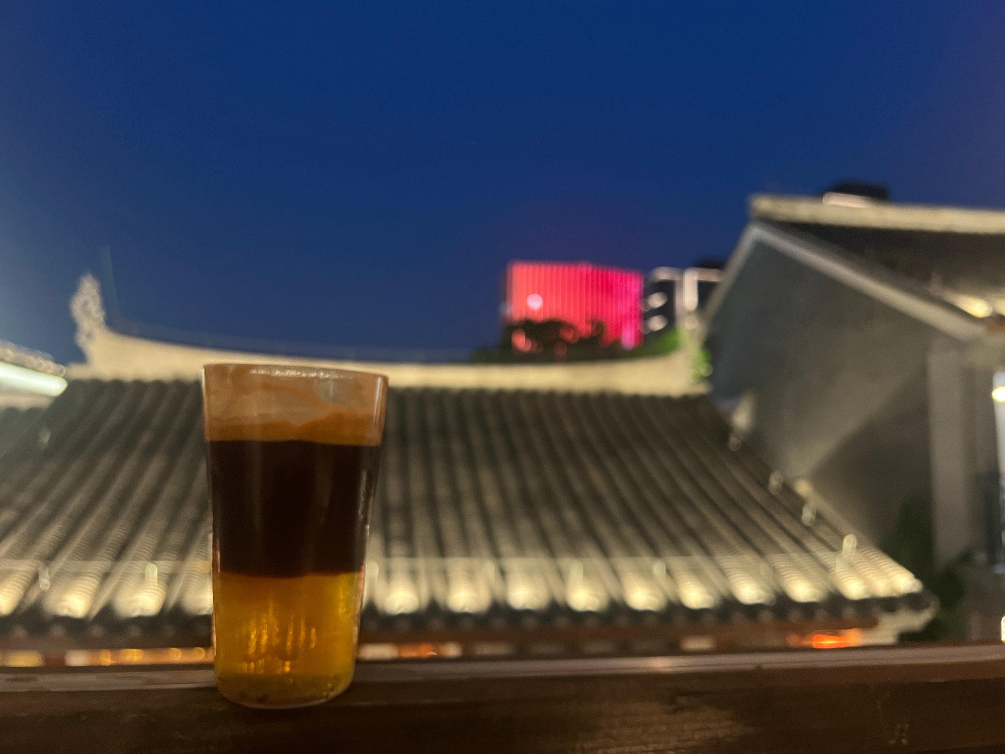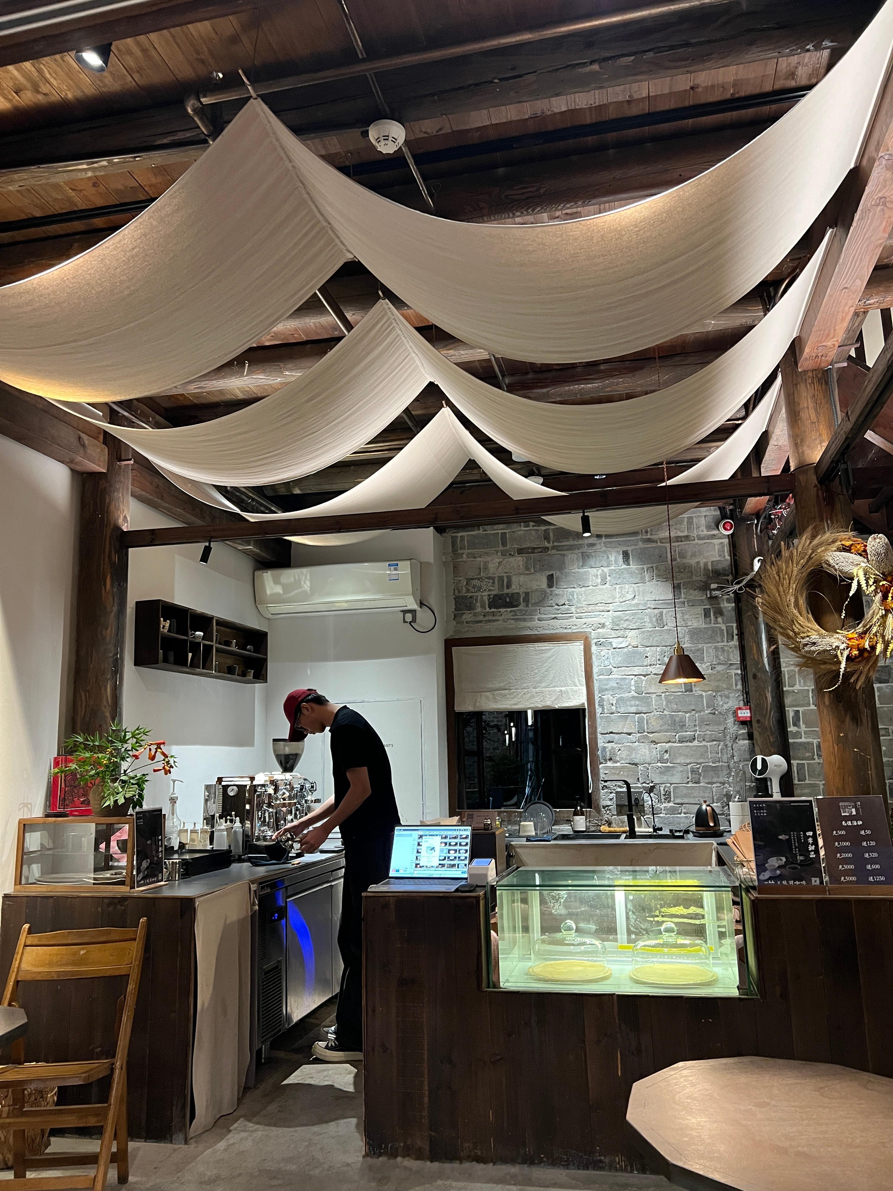 在店内的一小时里,除我外并没有其余客人,沿着嘎嘎作响的楼梯拾级而上,二楼视野并不好,看不见熙来攘往,唯感风中夹杂着潮湿而又闷热的台州方言来袭。摩挲着木质桌椅特有斑驳,回忆如眼前叠瓦一般,“无可奈何花落去,似曾相识燕归来”,至少咖啡是一致的。万变不离其宗,无论人生是否馥丽,都要哈哈大笑而过。