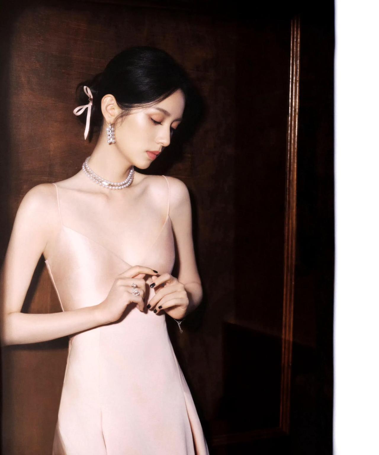 周也粉色吊带长裙 周也穿这条粉色吊带长裙实在太绝了!粉色本来挑人她穿起来却像“人间水蜜桃”,甜而不腻自带清新灵动的氛围;吊带设计刚好露出精致的锁骨和肩颈线条,利落中带点小性感,不张扬却足够吸睛;长裙版型衬得身材极好,裙摆垂坠感十足,走动时轻轻晃动,像把温柔的晚风都穿在了身上,又仙又有气质,把少女的娇俏和优雅平衡得刚刚好,这一身真的让人眼前一亮,活脱脱行走的画报呀!