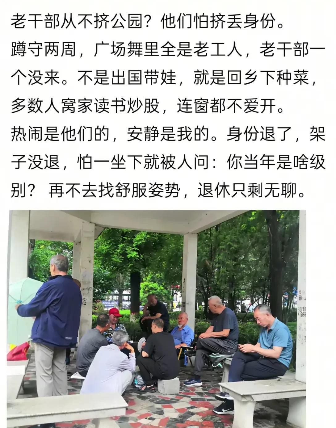 还是老话说得好,狼独行,羊群居,根本就不在一个频道上! 更高级的人独处着,并不是他想孤单,而是在他的周围找不到他的同类。大院里一天到晚在外面闲聊遛弯的都是工人身份,老干部见得很少。也有人说肯定是亏心事做多了不敢出来,怕万一被人认出来挨打,法治社会下应该不会出现这个情况!