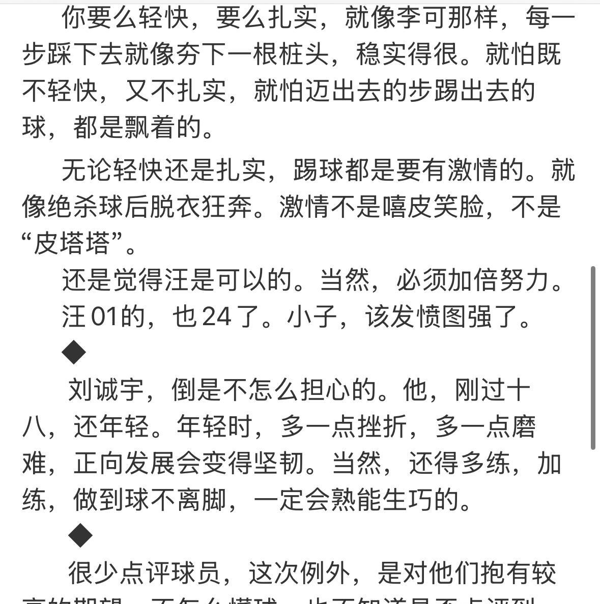 上海媒体人秦天今天发了一篇长文。他表示过往自己很少点评申花球员,但今天是例外。他要谈下徐皓阳,汪海健,刘诚宇这三位球员。 秦天认为徐皓阳和过去相比,少了点灵气。汪海健踢球少了点激情。这两人都曾经被秦天看好,但如今需要加倍努力了。 而对于刘诚宇,秦天倒不是特别担心。他还年轻,可塑性还很强。