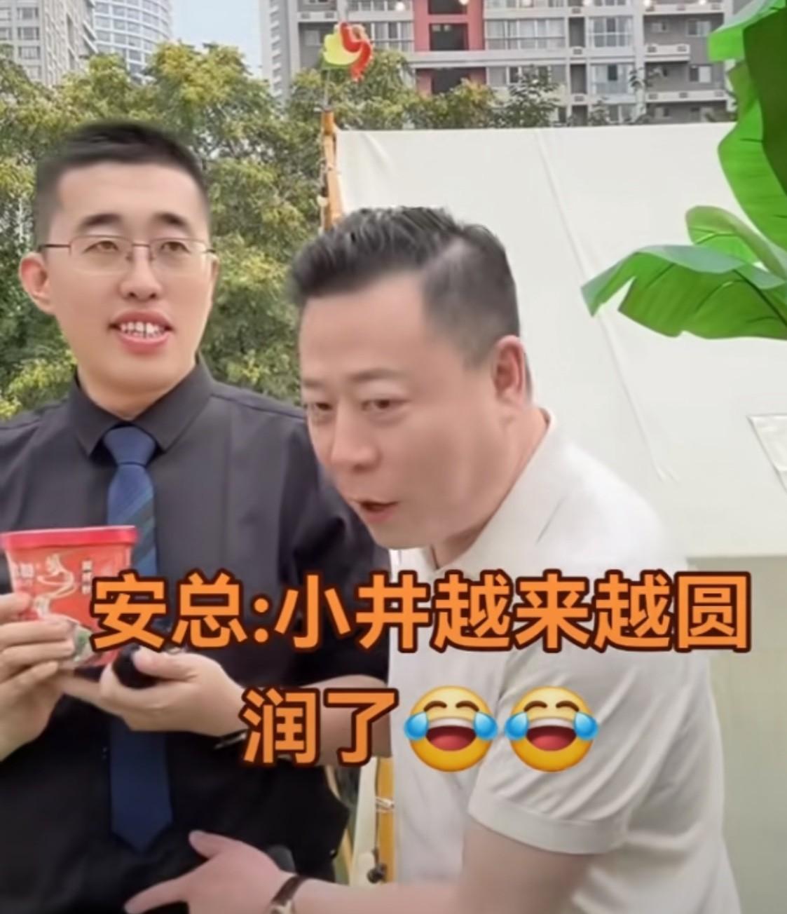 果然是强将手下无弱兵! 这画面看一次笑一次!小井和安总同框,安总低着头盯着小井的肚子看!小井浑身不自在的问领导您这是找啥呢? 安总抬起头用手指指着小井的肚子说:比我上次见你可是圆润了不少啊…… 逗得周围人哈哈大笑! 安总说我站你边上让我自信了哈,我感觉我变苗条了!安总幽默的调侃起了自己[呲牙] 不得不说