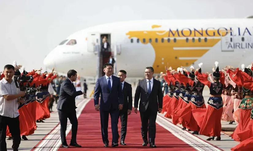 蒙古国总统呼日勒苏赫对塔吉克斯坦共和国进行国事访问,专机抵达塔吉克斯坦,塔吉克斯