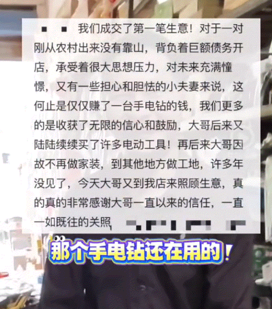 后来你来拿电锯,我们高兴得不得了。你没多说一句话,付了尾款就走了,但那一单,我们记了一辈子。”