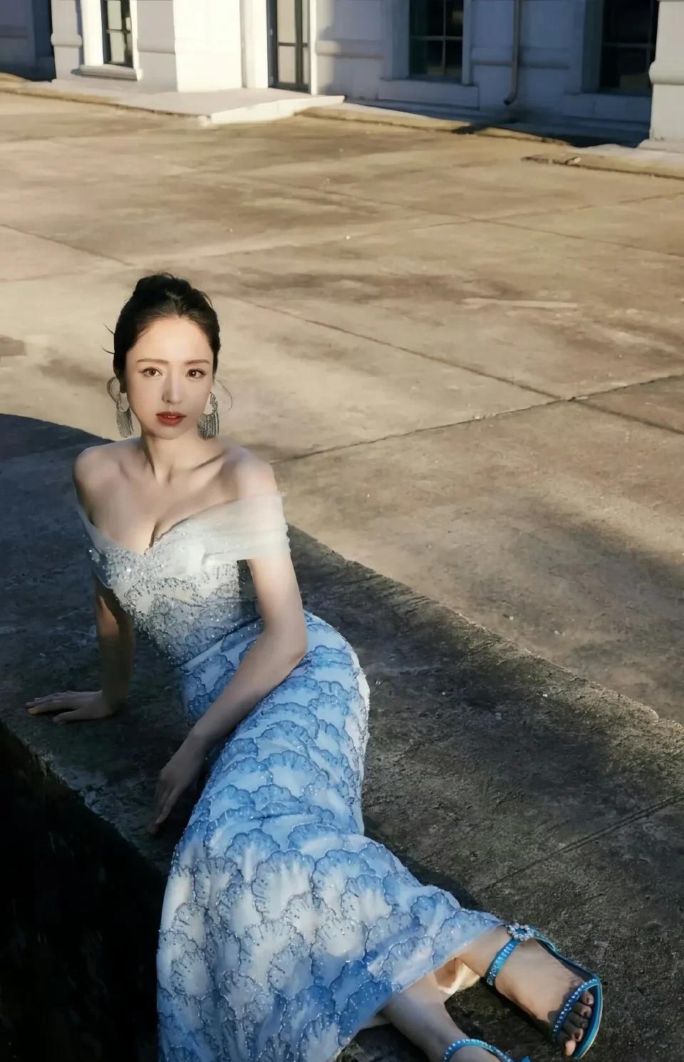 董璇这哪是下凡,分明是在释放魅力炸弹!一袭渐变蓝露肩鱼尾裙, 肌肤胜雪,身姿曼妙,眼神勾魂,随手一拍就是时尚大片!