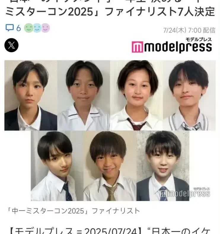 日本“最美初中生大赛”决赛圈选手照片公布,男生怎么看起来都有点“娘”? 消息来