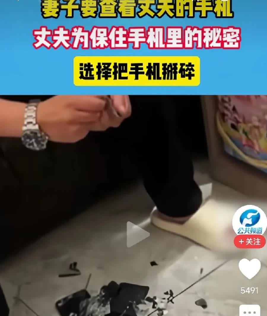 男子为防妻子查手机,狠心将苹果手机掰成碎片。男子出差回来,他老婆要看他的手机,男子回家前忘记删除记录,担心老婆看到手机里的秘密,不给老婆看。他老婆说,你除非将手机掰碎她就不看了。没想到,男子真的将新买的苹果手机掰碎了。他老婆眼巴巴的看他把手机掰碎,不得不说无毒不丈夫。 只能说男子疏忽大意了,他老婆查看手机不是第1次,回家之前为什么不把手机的秘密记录删掉呢?宁愿将新买的苹果手机掰碎也不给他老婆看内容,这白白损失了大几千块钱的。看男子手表,你知道应该是有钱人,也不在乎这几千块钱。