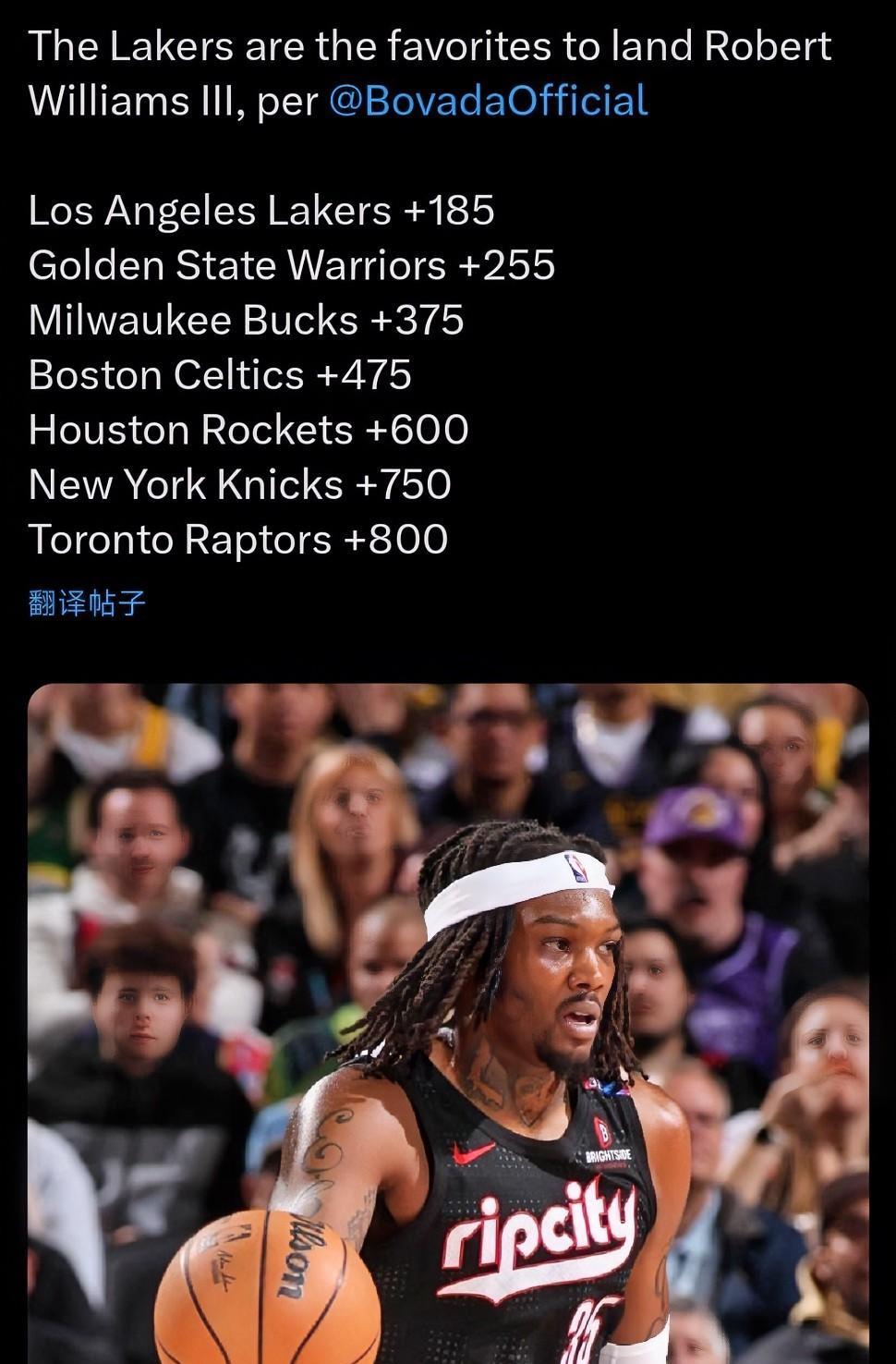 湖人加入罗威争夺战! 据湖人方面的媒体消息:湖人已加入罗伯特威廉姆斯(罗威)的争夺之战! 由于湖人当前在油漆区内需要具备运动能力的内线来巩固防守,所以湖人正在密切留意这位防守型中锋,把他视作巩固内线的潜在关键人物。 罗威堪称精英级别的防守能力与活力,或许正是湖人队重归竞争行列所欠缺的要素。罗威优秀的运动能力,契合湖人对更具活力、防守优先的需求。 罗威下赛季价值1495万的合同即将到期,因伤病隐患,罗威目前在交易市场上的价值大打折扣。开拓者曾索要一个首轮签,但没有球队愿意进行这笔交易。 上赛季罗威总共只打了20来场比赛,今年3月因为左膝慢性炎症接受了关节镜手术,预计缺席4 - 6周,直接赛季报销。 湖人在季后赛需要罗威这种级别的防守球员,哪怕他常规赛一直休战也没关系。到了季后赛,海斯明显达不到那个防守水平,艾顿也并非防守型球员。所以湖人要是能够交易来罗威,还是值得去冒险一试的,反正也是到期合同,如果不好用下赛季放弃便是。目前罗威下家的赔率,湖人高居第一位!#NBA# #NBA吐槽大会# #湖人# #湖人队内线# #NBA睿闻#