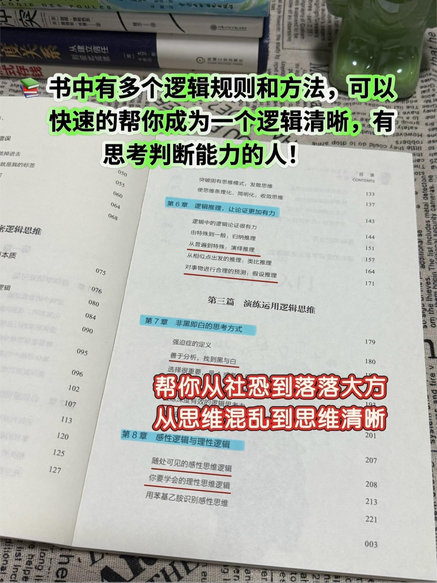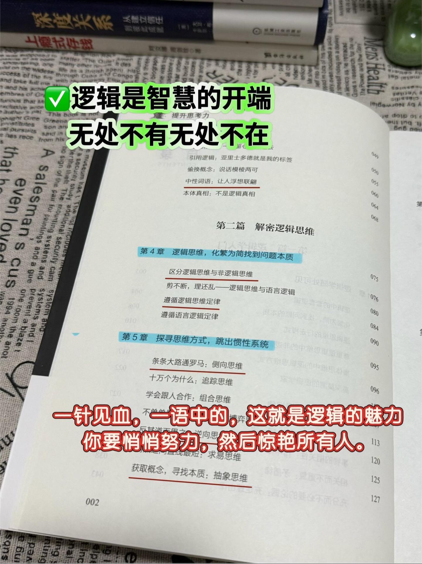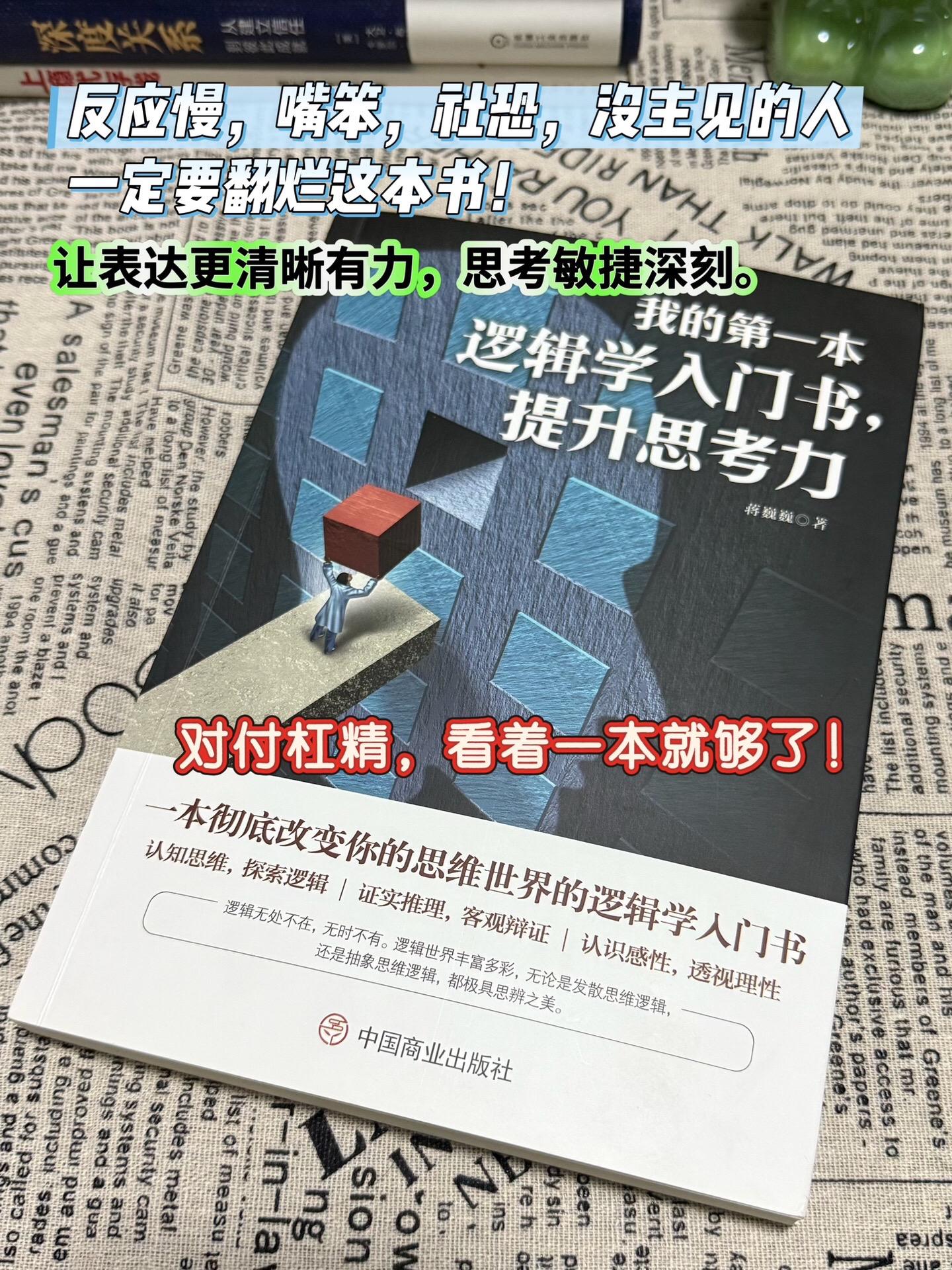真希望我身边的人都来读读这本书!逻辑混乱又不自知的人实在太多了!! 我真的,求求你们每天别再胡说八道了。 生活中和杠精的对话,根本都轮不到“三段论”出手…… 最常见的情况是:对方根本不管你在说什么,永远自说自话。抠字眼、偷换概念、大前提不统一等常见的逻辑谬误更是不用提。 · 秀才遇上兵,驴唇不对马嘴,根本没法沟通怎么办? 下次请直接把这本书丢给对方:拿走不谢,看完再来和我对话。逻辑好书分享提升自己