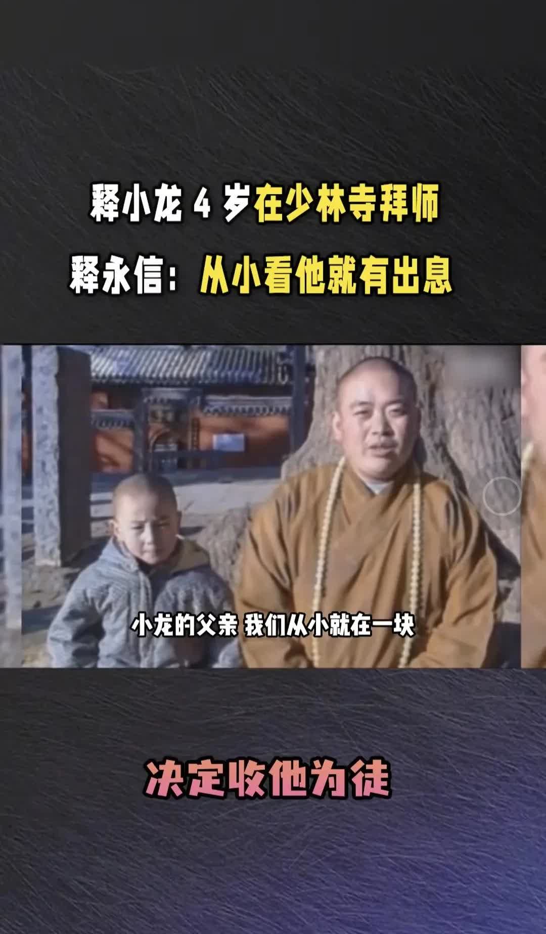 释小龙之所以能成为释永信的徒弟,主要还是释小龙的父亲陈同山从小就和释永信认识,而且还是特别要好的朋友。陈同山和释永信打小一起学拳练武,只是后来释永信出家,而陈同山没有。虽然他们二人的选择不一样,但始终保持联系。因为陈同山和释永信的这一层关系,释小龙在4岁时就被释永信收做徒弟。