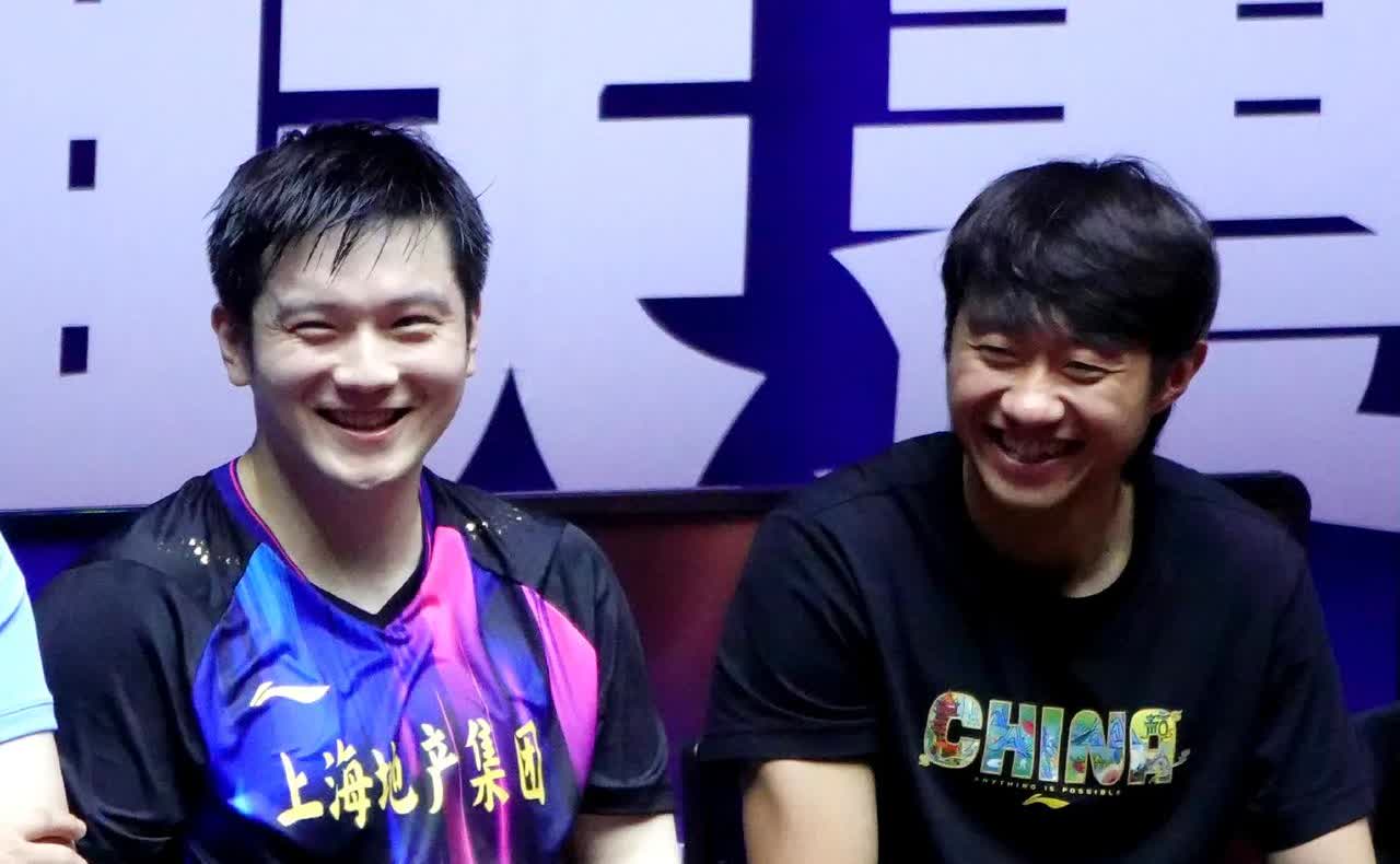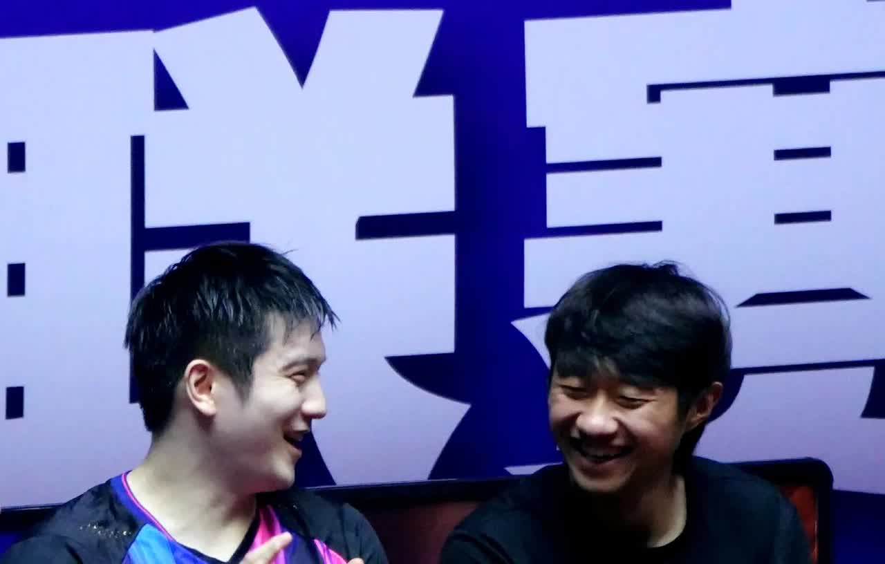 小胖和赵子豪,一个黑皮肤脏脏包,一个白皮肤雪媚娘,这两人坐在一起肤色就很明显哈哈哈,两个人笑得那么开心,眼纹都要笑出来了 这一笑眼睛都眯成核桃了哈哈哈 可以看得出来小胖在赵子豪身边由衷的很开心 有时候赵子豪不坐在小胖身边小胖也看看他坐在哪里干嘛 是不是赵子豪在这次乒超中涨球了小胖为他感到很开心,也力争一两分了 一下场就和小胖哈哈大笑,肯定哪个球或者看到什么事就笑了