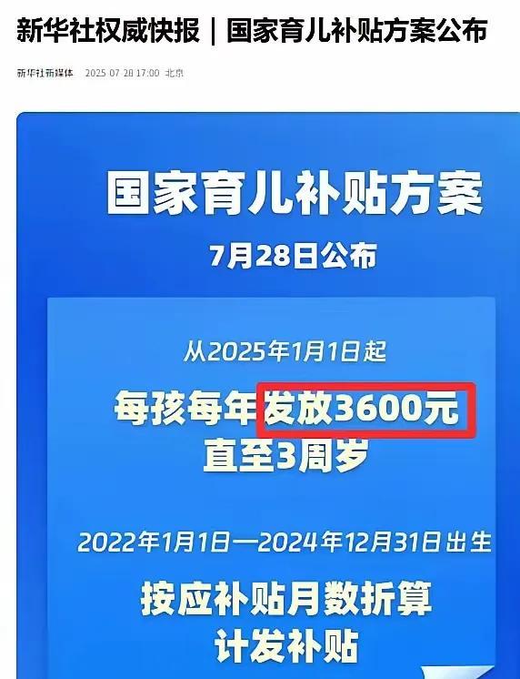 这是国家最新的育儿补贴政策,我开始还以为2022年1月1日后出生的孩子都能够领到