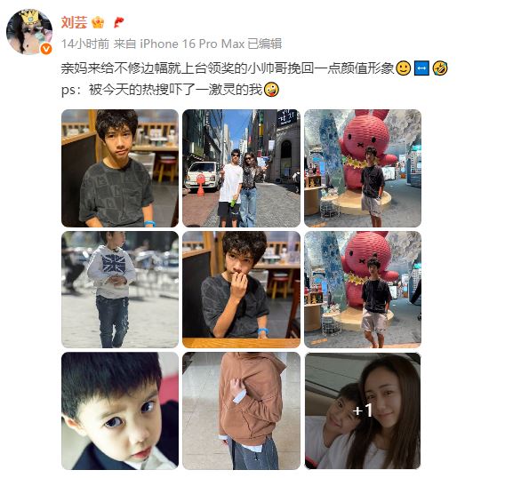 刘芸儿子头身比例惊人,网友吐槽:没小时候好看! 刘芸晒出一组儿子照片,并配文称: