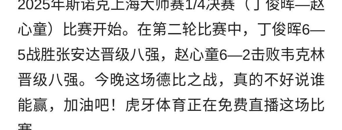 斯诺克上海大师赛1/4决赛(丁俊晖—赵心童)比赛开始