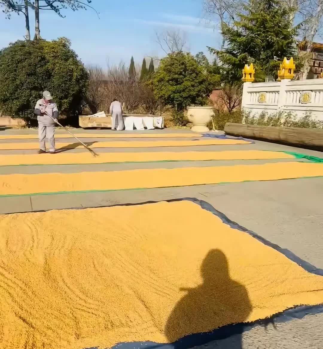 河南洛阳,有一名女子前往白马寺游玩,刚进入寺院,就看到室内很多僧人在忙碌着,有僧人开着农机进进出出,有僧人在打豆子,有些人负责晒豆子,忙的热火朝天。 有一名老僧人告诉她,这些豆子都是他们种的,白马寺自己的地,豆子成熟了,方丈释印乐带领着大家去收豆子,这些豆子主要是用来做豆腐以及腐竹等豆制品。 这名女子看着眼前这一幕,心里面非常佩服,白马寺的僧人热爱劳动,自己种粮食自给自足,跟很多寺庙的做法完全不一样。 据说,白马寺方丈释印乐前几天被选到少林寺当方丈了,他确实是一位有德、勤勉、亲民,众望所归的方丈。