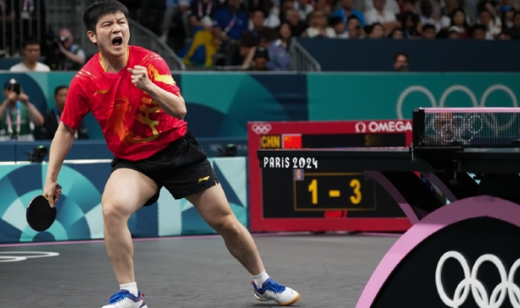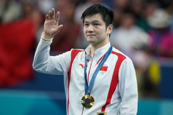 一年前樊振东在巴黎奥运会乒乓球男单决赛中战胜莫雷加德,夺得男单奥运金牌,也成为了