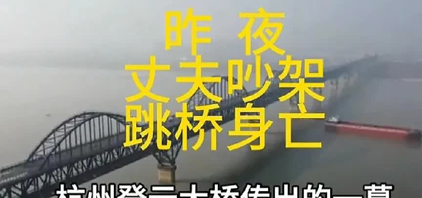 8月3号有人看到杭州登云桥上一对夫妻激烈的争吵,男的一怒之下跳了下去,随即女的大喊救命,有位路人赶紧打电话报了警,随后经过救援人员几个小时的打捞,才把男子救上来,但是为时已晚,男子已经身亡! 哎,太遗憾了,又是一位母亲失去了儿子,一个孩子失去了父亲,。 也许现在的男人生活压力太了大,老婆又不理解,唠叨唠叨,是压倒男人最后的一根稻草。 不管怎样夫妻吵架不能去寻短见, 每一个人的生命都是父母给的, 夫妻之间哪有不争吵的, 遇到事情一定要忍耐和平相处, 生命是父母给的,我们一定要好好珍惜的生活下去。夫妻之间,互相理解,互相体谅!过不下去就离婚,你死了,人家在找一个也就把你忘了,最痛苦是你的父母,白发人送黑发人让他们怎么能接受? 朋友们,这个男子是不是太傻了?