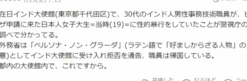 日本真不愧为美国的小弟,眼看现在美国在踩印度,日本也出来踩印度,日本媒体居然扒出一条发生将近20年前的事情,也就是2006年的事情。日本在上个月7月25日报道,当时一名在日本的30岁印度签证官,将一名19岁的日本女子拉进房间,试图侵犯她。女子挣脱后报警,日本以“不受欢迎”为由,驱逐了这名印度签证官。 日本还真是会看美国的眼色行事,看到美国在踩印度,他们也想方设法踩印度。眼看现在没有关于印度的糗事,就扒出19年前的事情重新报道。难怪别人都说日本这个小弟听话,不用美国开口,日本就懂该怎么搞事情,还真是如此,在溜须拍马这方面,日本可谓是名列前茅。