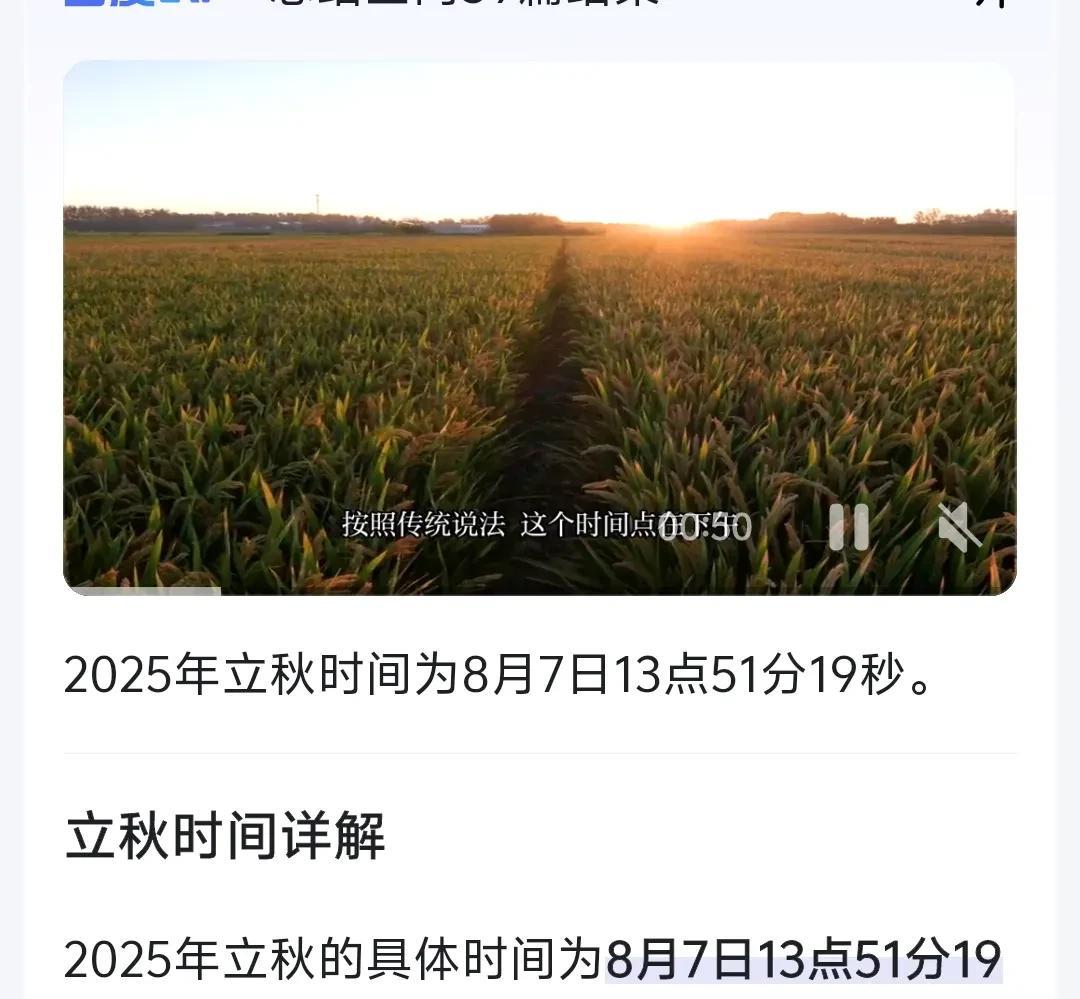 今年立秋时间是8月7日13点51分19秒,意思是今天经历了两个季节,上午是夏季,