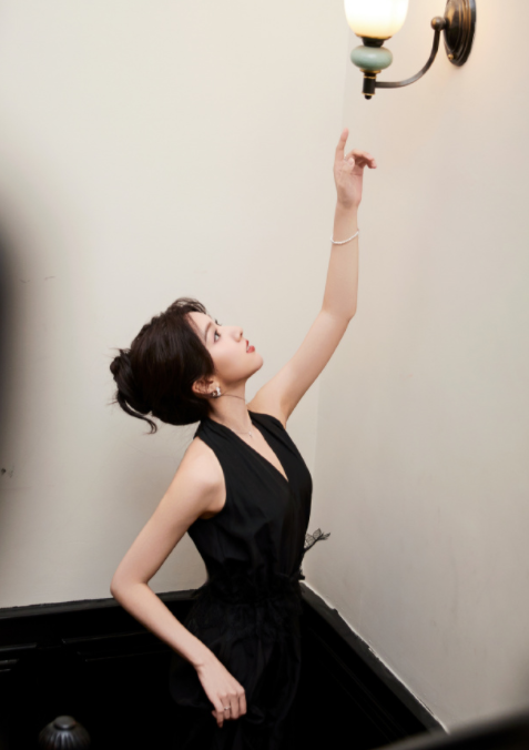 苏晓彤的黑色裙装,还是很可可爱爱的!